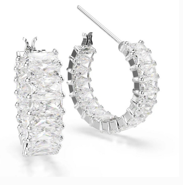 SWAROVSKI - ANNEAUX D'OREILLES DEXTERA FORME OCTOGONALE, TAILLE RONDE, BLANCHES, MÉTAL RHODIÉ