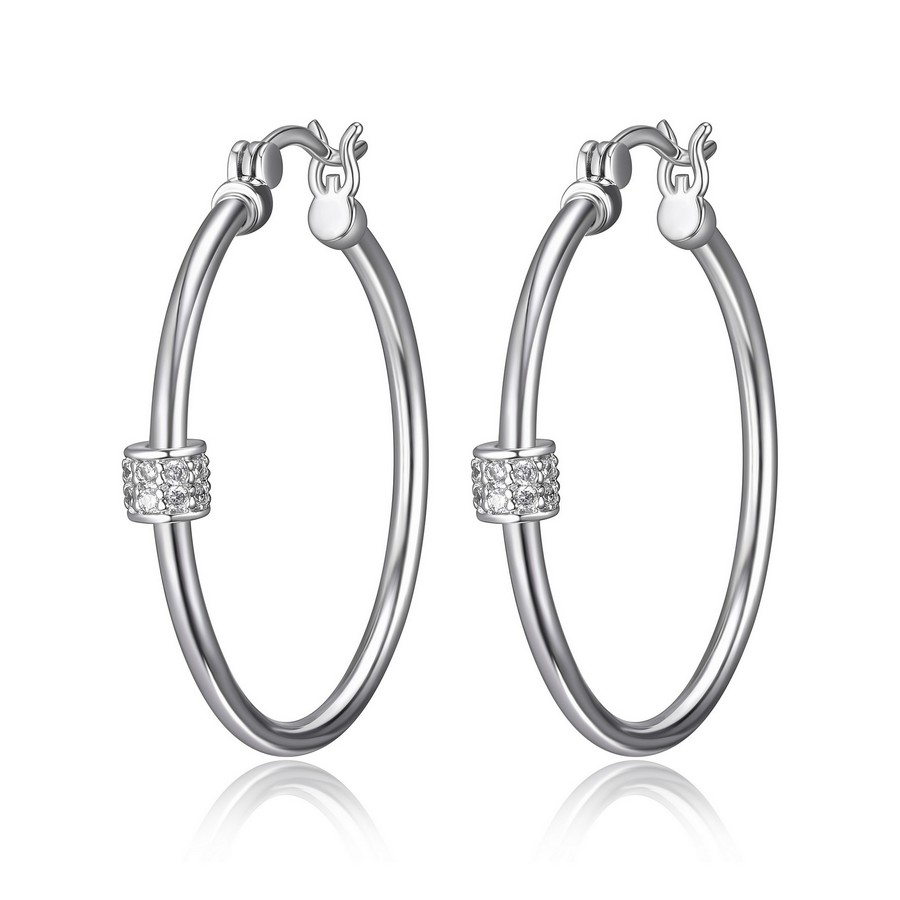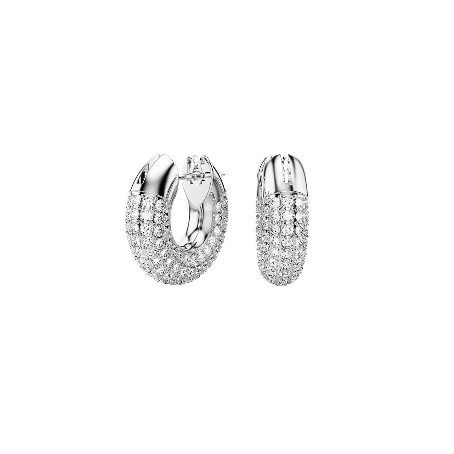 SWAROVSKI - ANNEAUX D'OREILLES MATRIX TAILLE RONDE, BLANCHES, MÉTAL RHODIÉ